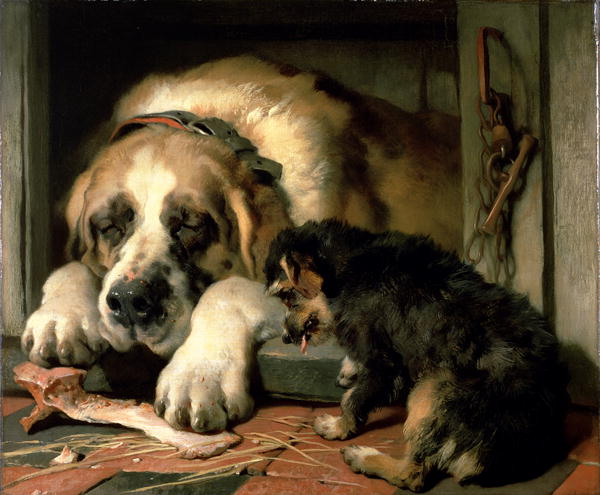 | Собаки на картинах сэра Эдвина Ландсира Оказывается, порода ландсир была названа в честь сэра Эдвина Ландсира (Sir Edwin H Landseer) - английского художника-анималиста XIX века, который в своих работах часто изображал на полотнах ньюфаундлендов, очень популярных в то время среди знати. Благодаря его творчеству эти собаки приобрели известность и стали называться его именем. На одной из его картин ньюфаундленд изображен с девочкой, спасенной им при кораблекрушении. Собака не расставалась с маленькой хозяйкой несколько лет, пока не отыскались ее родители: